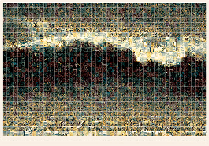 / 1485 panels from my graphic novel assembled to form a 4 x 3 m ”tsunami of immigrants” as mr Silvio Berlusconi called them.